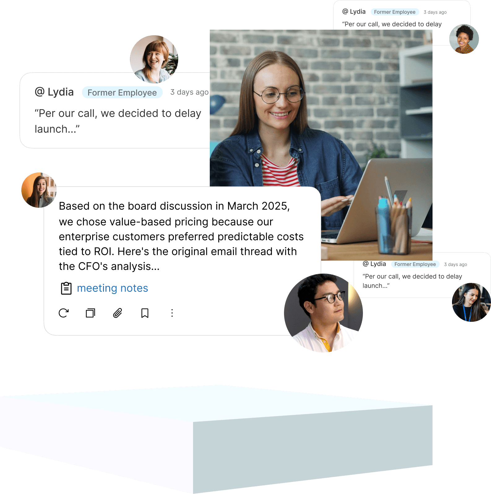 "When key team members transition, we used to lose months of context. With Relay, their digital twin stays in our channels, answering questions about past decisions and client relationships. It's like they never left the conversation."